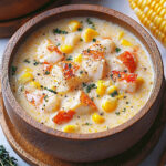 In summary, this Crab Corn Chowder is a must-try for anyone looking to indulge in a rich, creamy, and flavorful dish that perfectly balances the sweetness of corn with the delicate taste of crab. The combination of fresh ingredients and simple preparation makes it an ideal choice for both weeknight dinners and special occasions. For serving suggestions, consider pairing this chowder with crusty bread or a light salad to complement its richness. You can also experiment with variations by adding your favorite vegetables, such as diced potatoes or bell peppers, or even a splash of hot sauce for an extra kick. We encourage you to try this delightful Crab Corn Chowder recipe and share your experience with friends and family. Whether youre enjoying it on a chilly evening or serving it at a gathering, were confident it will become a favorite in your household. Dont forget to let us know how it turned out for you, and feel free to share your own twists on this classic dish! PrintCrab Corn Chowder: A Creamy Delight for Seafood Lovers